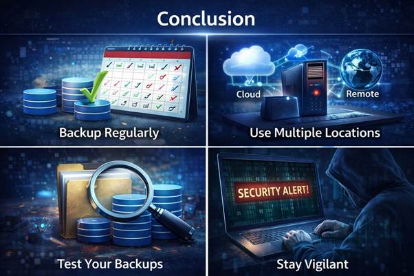 Testing your backups regularly is also essential. A backup is useless if it cannot be restored properly when needed.
