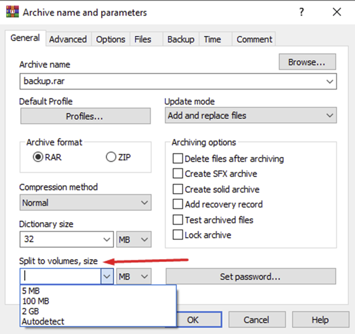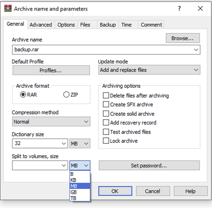 WinRAR allows you to create archives that are split into multiple parts. These are called multi-volume archives, and each individual part is known as a volume. This feature is especially useful for storing large amounts of data on removable drives or sending files via email.