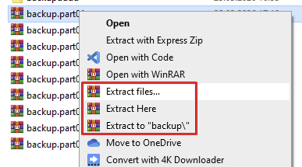 Older versions of WinRAR used a different naming system, where the first file had a .rar extension, followed by .r00, .r01, etc. While modern versions no longer create archives in this format, they can still extract them.