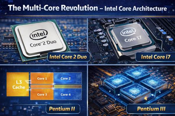 Further improvements introduced better power efficiency, making Intel processors suitable for laptops and mobile devices.