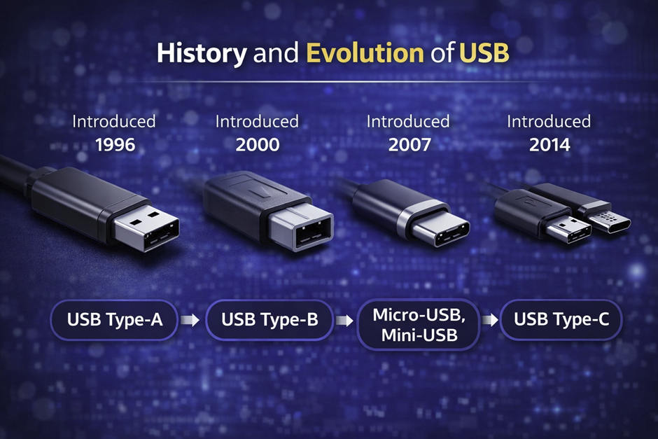 USB (Universal Serial Bus) is one of the most important technologies in modern computing, enabling seamless communication between devices and computers. First introduced in 1996, USB replaced a wide range of older connection standards and simplified how hardware interacts with systems. Before USB, users relied on complex setups involving multiple ports, drivers, and manual configurations, especially when connecting devices like a keyboard, mouse, or printers. The introduction of USB made it possible to connect devices instantly without rebooting, revolutionizing the user interface experience. Companies such as Microsoft, IBM, and Intel played key roles in developing and promoting this standard. Today, USB is used across nearly all platforms including Windows, Linux, and MacOS. Its versatility extends beyond simple data transfer to powering devices and supporting advanced technologies like Artificial Intelligence hardware accelerators.